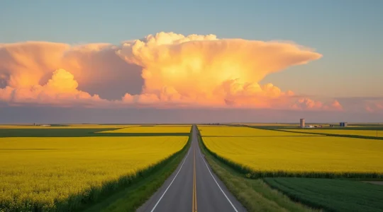 The dramatic skies that characterize prairie regions result from specific atmospheric conditions. The absence of topographic barriers allows weather systems to develop fully visible character, creating cloud formations and light effects rarely seen in mountainous terrain. Summer thunderstorms build as towering cumulonimbus structures, their development tracked across 50 kilometres of visibility. Sunrise and sunset paint the entire dome of sky rather than being confined to narrow valley views.